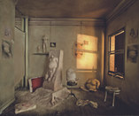 Au début des années 1980, Charles Matton commence à construire des lieux — chambres, escaliers, pièces anonymes — qu’il photographie, puis parfois repeint. Ces espaces, d’abord conçus comme dispositifs d’étude pour la peinture, prennent rapidement une épaisseur propre. À partir de 1983, ils deviennent des œuvres à part entière : Matton les appelle emboîtements. On les désignera bientôt simplement comme les boîtes.